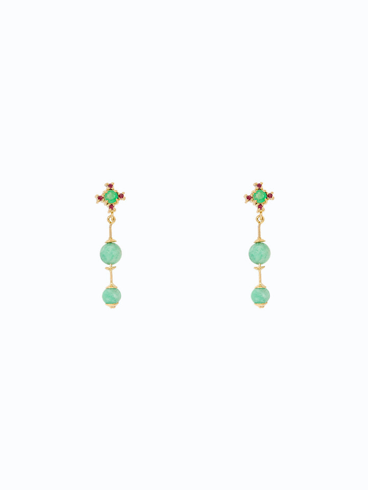 Aretes de oro 128k con esmeraldas balín y rubies