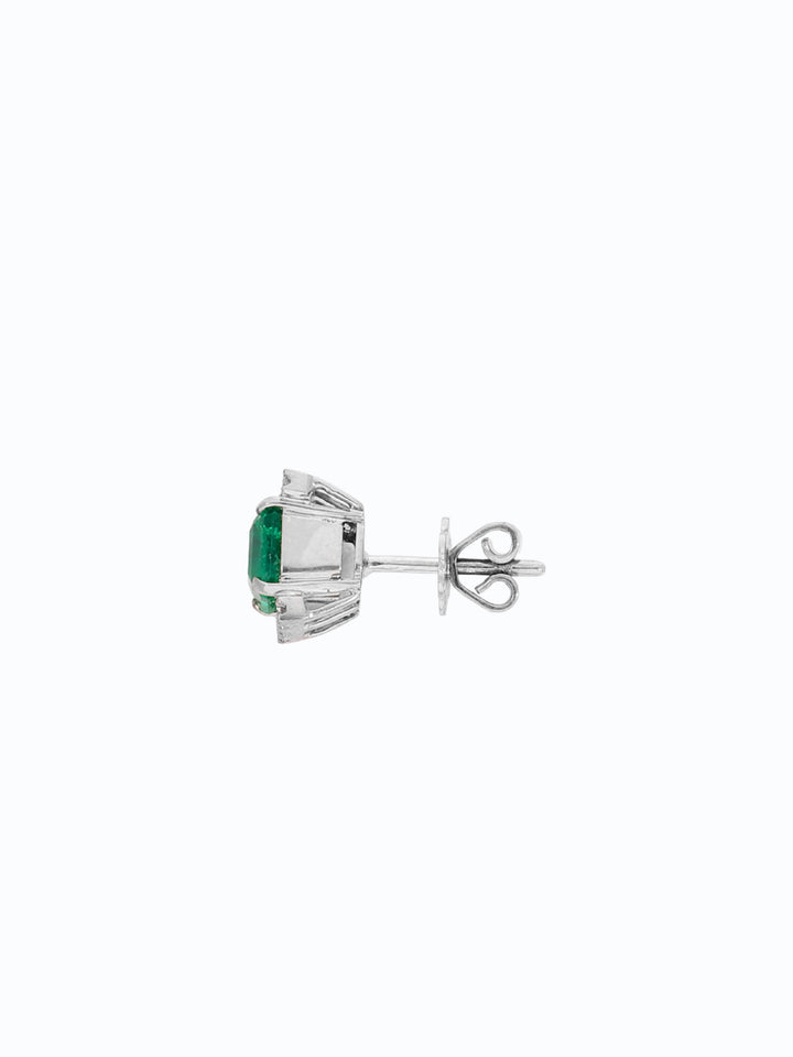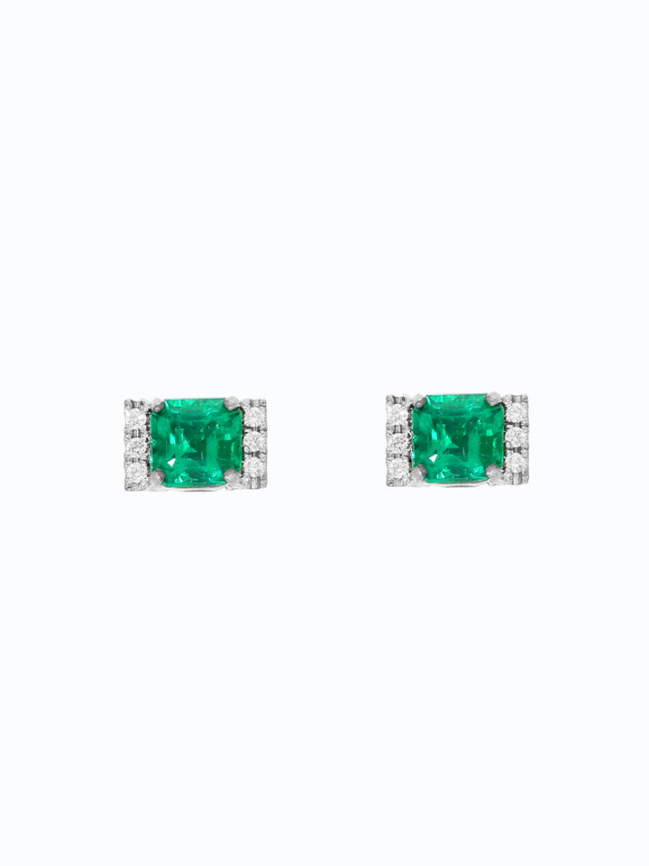 "Estos aretes en oro blanco con una esmeralda central y seis diamantes simbolizan pureza y equilibrio. La esmeralda conecta con la verdad del corazón, mientras los 6 diamantes representan armonía y protección. Una pieza que ilumina con elegancia desde adentro hacia afuera."