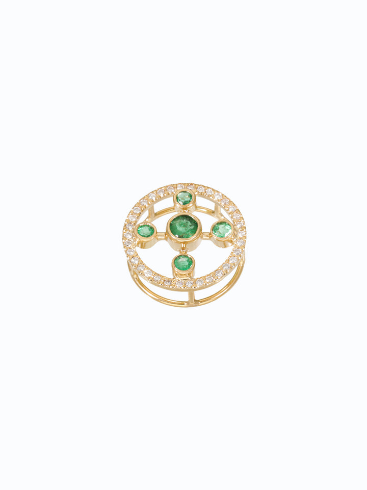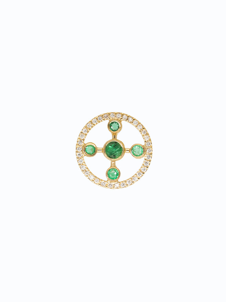 Dije de oro 18k con esmeraldas y diamantes diseño cruz