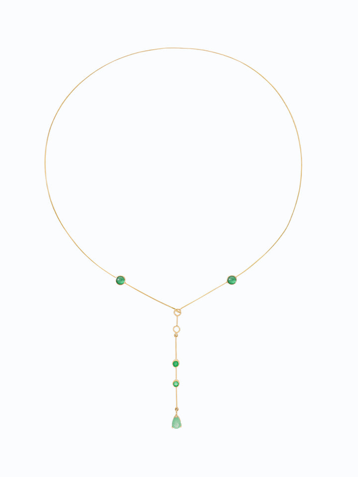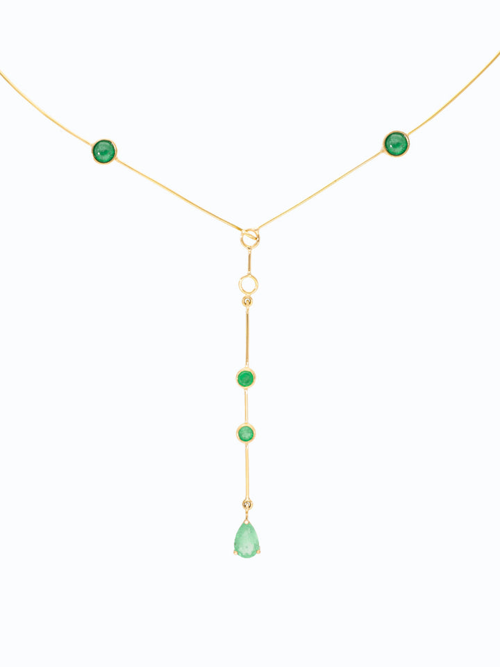 Gargantilla de oro 18k diseño hilo con esmeraldas
