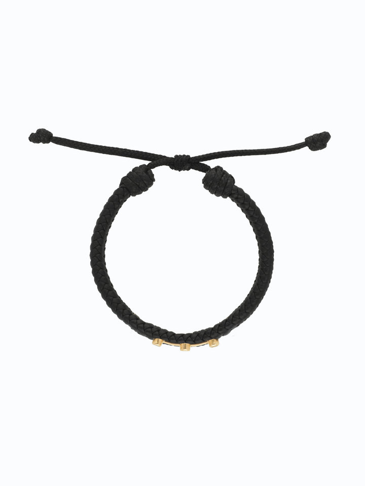 El número 3 representa la expansión, la conexión entre mente, cuerpo y espíritu: la trinidad de la fuerza interior. El cuero, símbolo de resistencia, se entrelaza con el brillo del oro 18K para resguardar la energía vital que emana del verde profundo de la esmeralda. Creada para el hombre que vibra con propósito, esta joya equilibra lo terrenal y lo espiritual, lo clásico y lo contemporáneo."