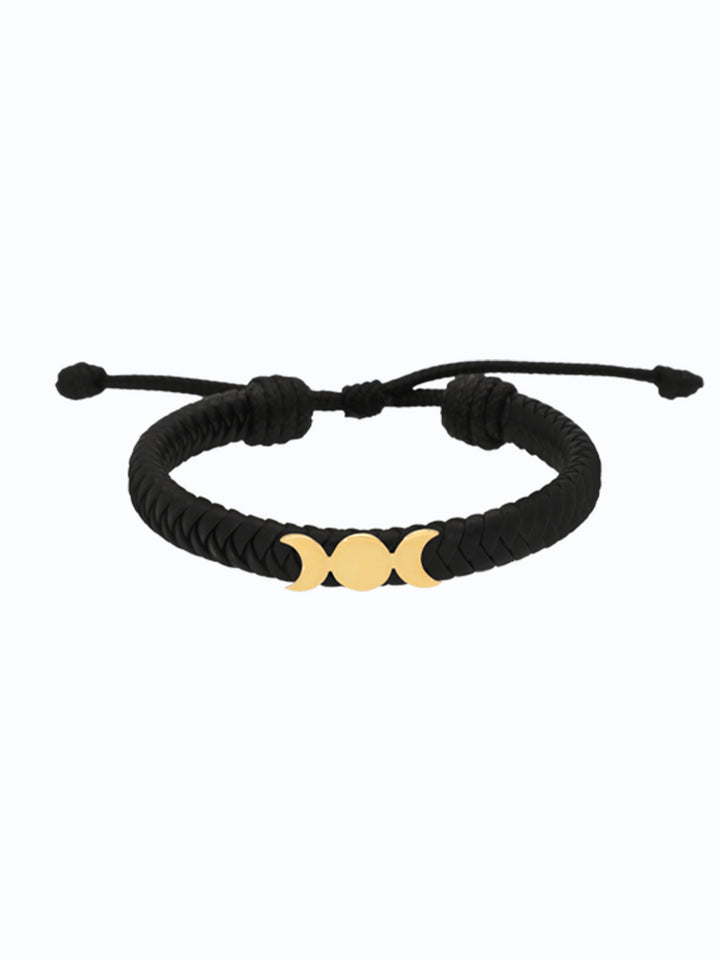 Pulsera de cuero con oro 18k diseño 3 lunas