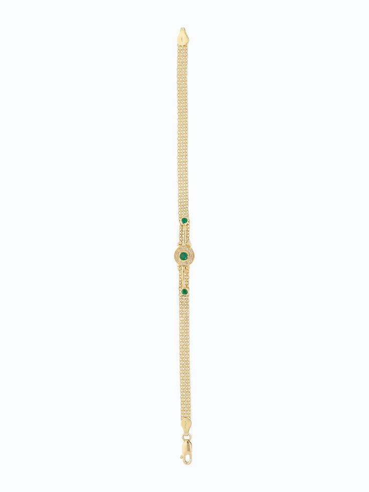 "Esta pulsera de caballero en oro 18k con 3 esmeraldas y 10 diamantes es un emblema de liderazgo y fuerza interior. Las 3 esmeraldas representan la armonía entre cuerpo, mente y espíritu, mientras los 10 diamantes simbolizan plenitud y nuevos comienzos. Una joya que acompaña a quienes construyen su destino con claridad, poder y propósito."