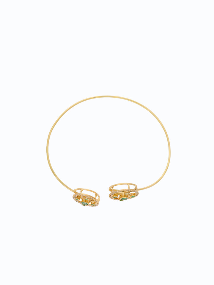 Pulsera de oro 18k diseño aro de cruz con esmeraldas y diamantes